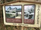 | 18 古代において都があった飛鳥と離宮のあった吉野とを最短で結ぶ交通の要衝を抑えるため地元の土豪越智氏が拠点にしていた。最初は支城にすぎなかったが織田信長による城割の命により大和国では高取城が残された。大和国を治める筒井順慶が、のちに羽柴秀長が、その後本多氏が大改修を行った。本多氏が断絶したあとを継いだ植村氏は将軍家光から必要なときにはいつでも勝手に城の修理を行ってよいという特別待遇を得、明治維新まで十四代にわたって植村氏による高取藩が存続した。 廃藩置県により廃城となったが明治20年頃までは天守など主要構造物は残っていたらしい。しかし人里離れた山頂にあったため管理されず自然崩壊したとのこと。 |