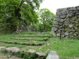 | 車で城の駐車場へ。そこから歩いて30分。なかなか大変でした。山の中に石垣が残っていてびっくりです。 |