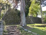 | 高取町観光案内所「夢創館」にて百名城スタンプ、御城印。 駐車できる台数は少ないが壺阪口門より20分で本丸跡へ行けると教えて頂く。 細い山道を行き止まりまで行き壺阪口門より登城。 (すれ違いも難しいような山道なので運転に自信がなければ時間はかかりますが壷阪寺の駐車場より歩いたほうがいいと思います) 山道は前日までの雨で道が悪かったが途中、整備された階段等もあり何とか本丸跡に到着。 きれいな石垣、巨木との景色がとてもよかった。 |
