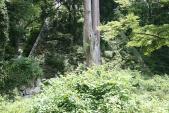 | 実は当初、高取城に来ることを迷っていた。 高取城跡周辺ではマムシが出没するという情報を得ていたからである。しかも猛暑の中、城跡までは40分程の山歩きが必要だということも。 スタンプのある「夢創舘」の店員の方に話を聞くと車なら七つ井戸側行き止まりまで行き、そこからなら徒歩10分程度で行けるらしい。 「10分程の山歩きなら暑さも耐えられるだろうし、マムシにも遭遇しないだろう…」と考え登城することにした。 七つ井戸側の駐車スペースに到着後さっそく城跡を目指して歩き始めた…。 しかし想像以上に雑草が鬱蒼と茂っている。マムシに遭遇しないか周囲を警戒しながら注意深く歩いて行った。 そして5分ぐらい歩いただろうか。ついには下からも上からも草が生い茂り道が見えなくなってしまった。 しかしここまで来てリタイヤはしたくないので駆け足で抜け大手門跡石垣へ到着した。 この山深い場所で数多くの石垣が残るその光景はなかなかに壮観。 しかし、、草木が生い茂ったひっそりとした山の中。その現実を考えるといつ襲ってくるかもわからないマムシの恐怖で心細くなり今来た山道も大急ぎで駆け降りた。 |
