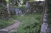| 車で行きました。道路は狭く対向車には要注意です。楽をするなら最上部の駐車スペース、写真のとおり 3〜5台止められるかどうか、ここから更に、徒歩で登ります。 石垣が残り、場所によっては、見晴らしの良いところもあります。 |