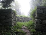 | 千早城から移動。わりと近かった。 夢創館にて、地図や行き方の説明をしてもらう。 丁寧に教えていただいた上、雨が降り出したので、車まで傘を貸してもらう。 車で行ける所まで登るが、途中から真っ暗。 その後駐車スペースに着くも、大雨のため、30分程車内で雨宿り。 帰ろうか迷ったが、雨が小雨になったので、登ることに。 二の丸から本丸へ登り、天守台を見て帰途へ。 岩村城よりも、険しい山の中に、これだけ立派な石垣を組む必要があったのか。 かなりの高地であるにもかかわらず、井戸には水が張られていた。 ぜひとも、草木や蚊が少ない時期に、再度来たい。 帰り際に、再度雨が強まり、車に着いたら土砂降り。 |