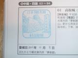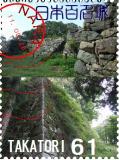 近鉄線壺阪山駅を降りてから駅前の美観地区を右に数分進むと右手に観光案内所夢創館がありそこでスタンプを押すことができます。状態は良好。そこから高取城までは歩くと一時間半以上かかるという話なので、時間はあっても体力のない私は、タクシーを呼んでもらい、車で行けるところまで行ってもらいました。料金は2190円でしたが、二の丸のすぐ下まで行くことができ、そこから城跡まではすぐでしたので助かりました。城跡は石垣がよく残っており、それらが苔むしなかば草に埋もれている姿は趣があり非常に良かったです。帰りは別ルートを下りましたが、下りなのに結構大変でした。このルートを登ってこなくて良かったなあ。 |