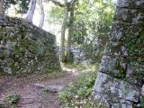 | 近畿地方で唯一未登城だった高取城へようやく行けた。夢創館でスタンプと地図、そして「月刊 大和路 ならら 登城せよ!」という本をゲット。奈良の城めぐりの特集です。夢創館で見た復元のCGがおもしろい。 車で行ける所まで行き、「七つ井戸」辺りのチョロチョロ水が流れる所を少し行くと石垣が見えてくる。 石垣の上に登ると足元に蛇が・・・。後で「毒蛇に注意」の立て札を見てギョットする。 石垣は苔むしていてかなり雰囲気のある山城という感じ。これで、三大山城制覇。 |