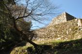 | 壺坂山駅からタクシーで城に向かう。2280円かかる。車を降りて5分ほどで 石垣が見えて、二の丸に着く。城跡を見学後行きとは違う道で下山する。 |