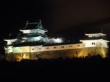 | 【35城目】 まとめて城めぐり第二弾。まずは5年ぶり2度目の和歌山城から。神奈川から車で500km超。夕方の登城だったということもあり人は多くない。スタンプ強く押し過ぎ城の絵柄が潰れてしまった失敗を悔いながらそれほど大きくない城の中を約20分程度で見てまわる。外へ出ると桜の開花は未だにもかかわらず、所々で宴会が始まっていた。多くの屋台も出ていてのんびりムード。思わずたこ焼きを購入。夜のライトアップもきれいだった。 |