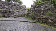 | 三回にわたり拡張された城郭の石垣は、石の種類が異なり、工法も野面積、打込接、切込接へと変化している。 |