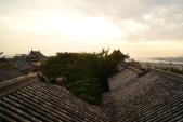 | シニア空割と青春18キップでの関西・山陽9城の旅の2城目、通算66城目。 猛暑の中、とくに石畳の階段を登らされるのは残酷だ。石の熱さが靴の底を通して感じられたのははじめての経験だった。ただここでは、海風だろう天守での快適なそよ風に助けられた。日干しレンガにならぬよう早々に退散、まるで命がけの登城と相成った。 それでも前に一人、あとから一人、スタンプ集めではないようだったが。 |