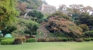 | 手前から見ると、久松山を背景に石垣と洋館の仁風閣が見えて趣深い。登っていくと石垣はかなり立派で、往年の姿が偲ばれる。復元が待たれる所。仁風閣で妹は戦国すごろくを購入。鳥取県立博物館でファインバーグコレクション展を見て帰る。 |