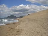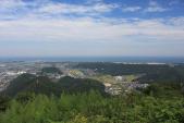 | 急峻な山城を登り切ると日本海と鳥取砂丘が見渡せます。 |