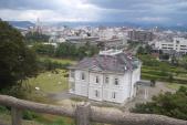 | 雨に煙る久松山の偉容な姿と段々と続く石垣に目がくぎ付け。仁風閣の展示も充実している。ただ駐車場が少なすぎ。 |