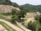 | 14城目 久松城 津山城より国道53号線経由で1時間20分到着。 【 駐車場 】 路上駐車帯満車の為、法務局の臨時駐車場に駐車しました。建物の日陰部分が多いので車が熱くならず助かりました。 【 個人的評価 】 70点 二ノ丸には珍しい登り石垣が残っています。天球丸の復元石垣は野面積や乱積の打込接で中々いい感じが出ています。ただ一部の算木積の隅石がきれいで立派すぎて、すこし違和感がありました。 山上ノ丸に登城。20分ほどで到着しましたが、最高気温が37度あるなかの登山は大変しんどかったです。景色はよいのですが、遺構の保存状態も悪く、夏草におおわれて石垣が見えなくなっています。 真夏の登城はあまりおすすめできません。また登りより下りの方が足元に注意が必要です。 仁風閣では、山陰の城跡(特に山城)が詳しく説明してある「山陰の城館跡」という約40ページの小冊子がいただけます。 |