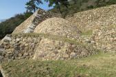 | 91城目。 登石垣、天球丸の巻石垣と、特徴的石垣が楽しめる。高石垣も圧巻。 しかし、天球丸から山上ノ丸への道のりはかなりキツかった!石で積まれた階段が普通の山道よりもハード。それでも本丸に到着したら日本海と鳥取砂丘が見える!好天に恵まれた!さすがに太閤ヶ平へ行く体力と時間はなく断念。 |