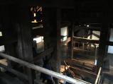 | 天守は、定番の前側より後方や側面側が無骨で雰囲気があり、最高にカッコイイです。 明治期の老朽時による柱の傷み具合がよく分かります。 |