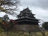 | 国宝松江城! 天気も良く青空と黒い天守が素晴らしい。 城内の急な階段、城らしくて頑張って昇る。 ハートは見つからず・・・ 梁で頭を打った人がいるので気を付けて。 |