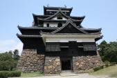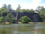 | 近づきつつある台風を気にしながら今回の2城目。初登城。私にとって念願の地である松江へ初上陸です! 言うまでもなく、現存12天守の1つ。黒塗りの望楼型天守であの大きさは圧巻です。まさに無骨といった印象。また天守から見える宍道湖をはじめ、松江の町並みは「あっぱれ(扇)!」のひとことです。 城内の石垣もすばらしく、写真を何枚とったやら・・・。とくに旧祈祷櫓下の石垣の勾配は美しいとしかいえませんでした。 復元櫓群もその雰囲気を壊さない忠実な仕事がなされており、今後もこの方向での整備に期待したいものです。スタンプはGood!是非とも再来訪したい名城でした。 ちなみに時間の許す方は、家老屋敷を模した「松江歴史館」、城下を違う視線で見ることができる「堀川遊覧船」がかなりおすすめです! |