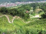 | 松江城の後、山陰本線で松江から安来へ。安来駅からバスで「足立美術館・鷺の湯温泉」へ。昼頃この日の宿『さぎの湯荘』に到着。 宿に荷物を置き、宿のご厚意で「道の駅・広瀬高田城」まで車で連れて行っていただく。ガイドブックの情報とは異なり、食堂はない・平日なので観光案内所も閉鎖されている。徒歩で15分ほどのスーパーマーケットで、昼食をとる。 そこから城を目指す。 結論――とってもよかった。変な感じで?階段?が整備されていたけれど、「これぞ山城」。かなり歩いたけれど、他に人は誰もなく、妻と2人で満喫。 |