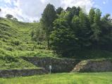 猛暑の中、安来歴史資料館でスタンプを押してから、月山富田城登城。車で登城口まで移動し、山中御殿まで歩き、本丸跡までは15分位。登城の道を前に、あまりの暑さに、山中御殿までにしました。 |