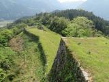 天気予報では雨マークが続いていて、最悪スタンプ押印だけになるかもと心配してましたが、見事な五月晴れ。前日までの雨で滑りやすいから気を付けるようにとの注意をリフト乗り場で聞き、登城。 途中の板張りの足場がある所は大丈夫でしたが、思ったより本格的な山道にどこに足を置こうか考えながら進みました。 素晴らしい眺めを堪能でき、本当に行って良かったです。石垣も圧巻でした。 |
