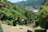 | 【87城目】 津和野駅から歩いてリフトへ。 途中神社の中を通ったら意外に時間がかかった。 リフトは前評判通り、速度が遅いので行きは快適だったが、帰りはちょっと怖かった。 リフト降りてから山の中をかなり進んだが、工事中の足場のある所は快適。 人が少なく、景色はこれまた良い。 |