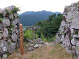 | 津和野城跡ロープーウェイ乗り場より登城を開始。 ロープーウェイと言っても、スキー場などにあるリフトなので、意外と揺れて怖いです。 搭乗中のカメラ撮影は、カメラもそうですが自身も落ちない様に注意が必要。因みにスタンプは、ロープーウェイの休憩所?待合室?にて押印が可能。忘れずにお立ち寄りを。 早速、頂上駅に到着後、係員さんに城址の事を軽く聞きながら真の登城を開始。途中、石垣の補修工事の為、鉄パイプを組んだ通路が建設されており、或る意味、歩きやすく楽ちんな登山。 但し、風情は全くないので、メンタル的にはちょっと残念かな? 城跡付近は、石垣の遺構が素晴らしく、ゆっくり見学。 山頂の高台と言う事もあり、風景撮影も捗ります。 中国自然歩道を歩いていくと、曲輪郡、壕を見ながら、中荒城まで行けるみたいですが、南櫓門跡より先の自然歩道は樹が倒れていたりと、とても歩けそうもないので断念。 |