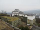 15城目。松江を訪れてからJR伯備線・姫新線と乗り継いで津山の町へ。さすがに山間とあって段々肌寒くなってきた。次の目的地岡山へ行く電車に間に合わせるため、駆け足で登城。関ヶ原の戦いで戦功をあげた森忠政が入封し、1616年に完成させた。津山盆地の中央に位置する鶴山に、総石垣でもって雛壇状に3、4段曲輪を重ねて築いた。いわゆる「一二三段」と呼ばれる構えである。城内の櫓の中で最大級だった備中櫓は2005年に再建。かつて本丸には五重の層塔型天守があり、それを取り囲むように六十くらいの門や櫓を配して防御を固めていた。現在は鶴山公園という形で整備され桜の名所として知られている。 |