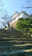 | 63城目の登城。森蘭丸の弟、忠政の築城で13年かかったとのこと。吉井川と宮川の合流点を見下ろす小高い山(鶴山)に建てられた。天守閣や付属建築は、取り壊されて今はありませんが、その城跡を見ると往年の面影が感じられます。桜の季節にもう一度行って見たい。 |