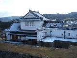 | 今年の正月は大雪で中国道はチェーン規制の中の登城でした。 津山の町並みが一望できます。 |