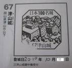 六十一城目。JR津山駅より、徒歩で15分ほど。 一二三(ひふみ)壇と呼ばれる、雛壇型に積み上げられた石垣が良く残ってます。 史料に忠実に、当時の工法で復元されたという備中櫓も見事です。櫓内で放映しているヴィデオ(DVD?)も、なかなか勉強になる内容でした。 スタンプは、備中櫓内で。状態は良好です。 なお、城址公園に入るには、入園料210円也が必要になります。開園は8:40〜でした。 |