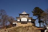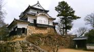 | 2016.1.23(土)天候晴れ。 第67城目登城終了。 2016年最初の登城。前日名古屋で仕事終了後岡山駅近くのビジネスホテルに宿泊。8:05発特急やくもにて備中高梁迄。9:05発の備北バスで運動公園前迄(160円)。そこから150メートル登った城見橋公園からシャトルバスでふいご峠迄(往復300円)。そこからは徒歩で約15分登って天守迄。入口付近から見た高梁市内は絶景。天守閣入口で300円払ってこちらでスタンプもゲット。試し押しをして良好な陰影を確保。天守閣は2層2階で小ぶりだが現存12天守だけあって存在感は素晴らしい。 手前の休憩所に美味しいお茶のサービスがありました。 帰りは城見橋公園迄徒歩で降りる。途中に大石蔵之介が腰掛けた岩があり歴史を感じた。 |