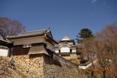 スキーシーズンが無事終わり、金曜日が休みになったため2泊3日の城巡りに出掛けました。前回は備中高梁駅からふいご峠までタクシー、帰りは武家屋敷通りまで乗合いタクシーを利用して楽をしたため、今回は駅から徒歩で往復しました。片道約3Km程度1時間弱でした。登山口からは竹田城と比べると少しきつい程度でした。岡山から本四連絡橋で丸亀に向かいました。 |