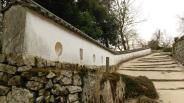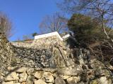 | 第15城目。 ツアー2日目。小さな駐車場でマイクロバスを降り、登山道のような斜面を進み(ガイドの方によると約1キロ)、少し開けたとこから石垣を見上げると、狭間を備えた土塀が見える。コンパクトながらも、山に溶け込んだ素晴らしい城。流石は、国の重要文化財である。NHK真田丸のオープニングでも使われている。 |