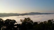 | 雲海を観るために午前6時30分にふいご峠駐車場に到着。 無論この時間には麓の駐車場までのシャトルバスは運行していないので、 走り+歩きで登城しました。登城道を歩く途中に見事な石垣が見えます。 雲海も見ることができました。 7時に天守前に到着しましたが、天守見学は9時からとのこと。朝早く登城する人は注意が必要です。 尾根沿いにある大松山城も見学して天守前で待っていたら、8時30分頃に係員さんのご配慮で入れてもらえました。 天守内に、放置されてお化け屋敷のようになった天守の写真がありました。 同じく、大修理の際に小学生が一人一枚の瓦を背負って麓と城を往復したときの写真があり、小さな力が結集して現存天守として復活したんだな〜とムネアツでした。 山上にありすぎたために放置され、その結果、現存天守として今に至る・・・ 人間万事塞翁が馬という言葉を強く感じた城でした。 |
