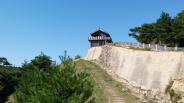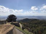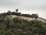 現地のバスツアーを利用。鬼城山ビジターセンターで押印。西門から東門の近くまでガイドの説明を聞きながら散策した。当日は天気が良く遠く四国の山並みまで見渡すことができた。 |