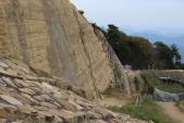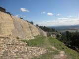 | 赤穂から倉敷へ移動して宿泊。翌朝一番に自家用車で鬼ノ城へ向かいました。道路が狭いのは覚悟していたのでビクビクしたがら行きました。途中一台だけすれ違いましたが、地元の方ですんなり交わして下さいました。ビジターセンターの付近は駐車場もきれいに整備されています。トイレもキレイ。パンフレットを頂き、資料を拝見してから西門へ。車椅子の方も行ける?舗装された道で行くことができます。西門から先は傾斜もあり、踏み外したら怖そうなので、石畳をそろそろと下りました。それでも足がひやっとする崖っぷちでした。眺めは素晴らしかった。 |