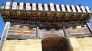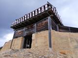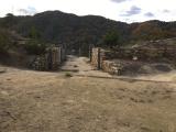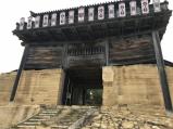 | 古代の城ということで、復元された西門は戦国時代とは全く違う形をしています。山の尾根をぐるりと囲む城郭を回るのに1時間半はかかります。全部見るとなると2時間コースでかなり体力が必要です。 |