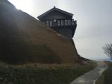 | 登城、今日は無理ではないかと思っていたが、12時以降に雨が止み始めて、土塁の見学ができる。 |