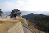 | あまり興味のある時代ではないので期待はしていなかったが、訪れてみると壮大さと景色の良さに驚いた。時間を過ぎていることを認識しつつ、前日夕方の17時5分頃に訪問すると、案の定誰も居なかった。辺りは人の気配がなく、翌朝再訪。駐車場までの道は細く、すれ違いポイントを確認しながら進む。 展望台から望む鬼の城は、壮大であった。チビがやまびこを楽しんでいた。また、櫓門からは、市街までの景色が一望でき、天気の良い日の眺めは最高であった。 |