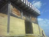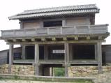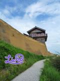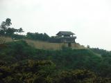 | 個性的な西門まで登ると見晴らしが素晴らしい。黒沢映画に出てくるような門である。 |
