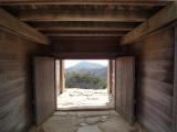 | 個性的な西門まで登ると見晴らしが素晴らしい。黒沢映画に出てくるような門である。 |