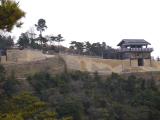 | 通算38城目(中国地区6城目) 自宅からマイカーで2時間40分、初登城です。変わりやすい天気で、晴れたと思ったらまた時雨模様。今日から師走、とにかく寒い中での城攻めでした。 寒さのせいか、人はまばら状態で、のんびりと反時計回りで一周してきました。また、皆さんが言っていたように、城までの道は狭かったが、寒さのせいで訪れる車が少なく、タイミングよくスムースに登れました。 古代の山城とあって、西門などは戦国時代の城も門と趣が異なり、感動しました。また、西門付近と、第二展望台から見た、周辺の山々の紅葉がすばらしく、二度感動しました。スタンプは、ビジターセンターで押印。試し押ししたので、きれいに押印できました。 |