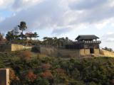 | 12月29日はセンターが休みでしたが、 電話確認した所、職員の方のご好意で外にスタンプが置いて くれるとの事で行ったらちゃんと置いてありました。 有難うございます。 城跡は史跡が丸々残ったような形で 独特の門は近くより、ちょっと離れた所の展望台から 見ると良い風景となりました。 城跡のみならず全ての箇所を全部見て廻ると2時間は かかると思います。 |