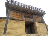 | 備中国の山間部、山道を数十?を走ると駐車場へに到着、そこから散策路を楽しみつつ進むと梢の間から木製の砦が出現、まるで山賊の砦の様だ。農耕地もないこの地で何を治めていのだろうか?山間のロマンを感じる。 |