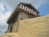 | 服部駅から夏の日差しが照りつける中を延々とアスファルトに舗装された上り坂を1時間強歩いていくとビジターセンターにたどり着きます。 センター内には城跡各所の解説などがパネル展示されており、事前に見学したほうが城内散策に際し、理解がしやすいかと思います。 復元整備された西門は所謂日本風建築とはかなり趣を異にしており、なんとも不思議な感じがします。その後城跡中央部の礎石建物群跡を見学どのような建物があったかは詳らかではないですがかなり広範囲に建物が置かれていた事が窺えます。 そこから外周の石垣に沿って東門、南門そして幾つか設置された水門跡を観て廻り西門へ戻りました。各展望ポイントからの眺望も素晴らしく、石垣や土塀の構造なども興味深くじっくり見ていたかったのですが、暑さにはかなり参らされました。城内では殆ど水を確保できませんので、必ず事前に準備して行ってください。 【65/100】 |