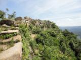 | 鬼城山の頂上付近までは車で行けます。山頂付近に西門、それに繋がって版築土塁や石垣、水門などがあるが、広すぎて全部を見ていない。古代山城の好きな人に、お薦めしたい城です。 |