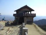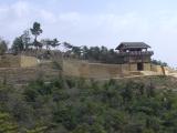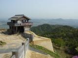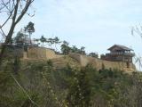 | 95城めです。 倉敷からレンタカーで砂川公園まで約20分、そこから細い山道を約15分、うねうねと登って到着しました。復元された西門からは総社平野をはるかに見晴るかすことができます。ようやく訪れた春霞に包まれ、絶景でした。 |