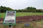 スタンプ捺印32城目で、2回目の訪問。前回訪れた時の崩れかけた様子から、築地塀を遺構だと思ってしまった。今は綺麗に積み直おされていて、いかにも「復元しました」感になっている。埋蔵文化財調査センターは、政庁跡から直線距離で2kmほど離れている。 |