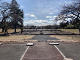 | スタンプは管理事務所の外に置かれていた。 広大な敷地であったことを伺える景色。 |