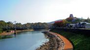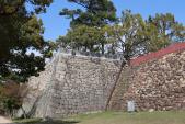 13時40分岡山駅前から路面電車に乗り岡山城に向かった。旭川沿いの堤防を降り、大手門側に回った。下段から眺める石垣は宇喜多時代の野面積みの石垣と池田時代に積まれた打ち込みハギの石垣が共存し、なかなか面白い。天守閣に入り、岡山出身の磯田道史さんのビデオ説明で岡山城の特色・歴史を学習。コンクリート製の復元天守であるが、外観は忠実に復元されたようである。改めて正面から眺めると、左右非対称の望楼型天守であることに気が付いた。天守を支える北側の石垣は折れ曲がっているので、地形上の制約を織り込んで築かれたようだ。戦災をまぬかれた月見櫓、中段から発掘された宇喜多時代の展示石垣を観た後、改めて旭川沿いの石垣を見て回った。宇喜多時代に築城されて以来、小早川氏、池田氏と城主が変わるごとに城は拡張・修復され、石垣の積み方の相違がくっきり現れている。本段東側の石垣には「(宇喜多)秀家は安定性の高い大型の石材をきちっと積んでいるのに対し、(小早川)秀秋は丸みの強い石材を粗雑に積んでいる」(若干悪意のある印象)との案内がある。確かにそう見えるが、粗雑に積んでも崩れてはいない。 |