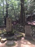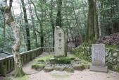 | 第83城目 資料館でスタンプをもらい、輝元像を探し当て、郡山城の石板がある比較的新しい公園に車を止めて、毛利家のお墓へ。苔むす林はなかなか荘厳な雰囲気でした。移動時間の都合で本丸跡までは上がりませんでした。 郡山城のスタンプは実際には写真では撮れない絵でした。城跡が無い”千早城”パターンで、ちょっと残念。 |